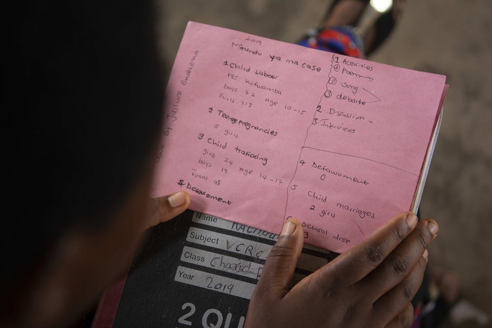 Youth clubs also have regular meetings for adults where they are educated about children's rights and their importance to society. But above all, the young people must be able to find the right arguments and persuade adults during their outreach activities. In their weekly sessions, they therefore train with Alex Mwangosi on how to do this. Right now, they are facing each other in a role play. In a firm voice, Justina quotes the passage on the right to education. She has also learned how to file a missing person's report and is no longer afraid to address authority. "In the beginning, it took a lot for me to overcome. But if we don't help ensure that all children go to school, we won't succeed in fighting poverty. And then the next generation will again send their daughters and sons abroad to work. It's high time to break this cycle."